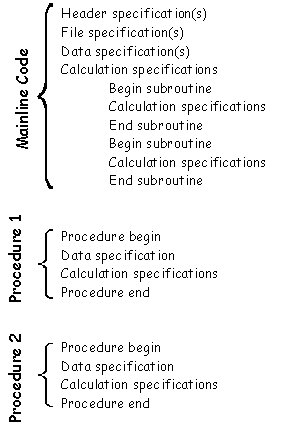 The simplest way to use a procedure in ILE RPG is to code it directly in your program's source member. This is very similar to coding a subroutine (in fact, it is also very easy to convert a subroutine to procedure). An internal procedure is always coded towards the end of the program, after any mainline code (including subroutines). The general program structure with an internal procedure is as follows: